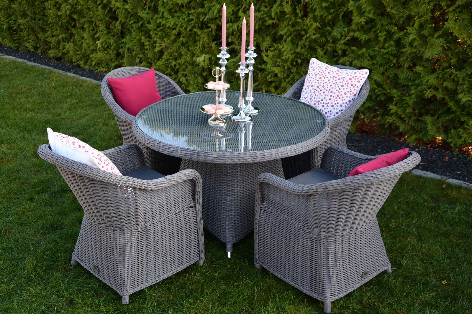 rundt hagebord med stoler